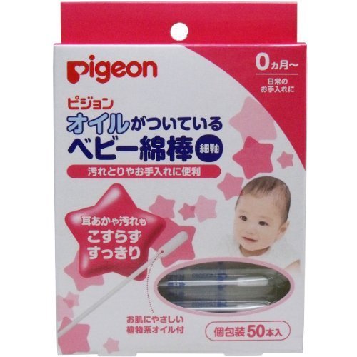Pigeon : Baby Slim Cotton Swab Coated with Plant-based Oil for 0 Month or older Baby (Made in Jpan)