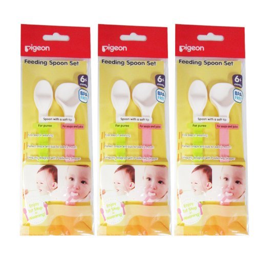 New LOT 3 X Pigeon Baby Feeding Soft Top Spoon Ergonomic Grip Containing 2 Pcs by Pigeon