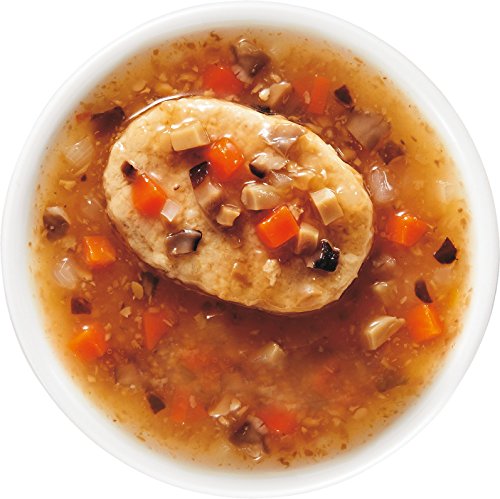 - 原材料:豆腐ハンバーグ(豆腐、鶏肉、たまねぎ、つなぎ(パン粉、でん粉、植物性たん白、乾燥卵白)、チキンオイル、しょうゆ、大豆繊維、砂糖、食塩、オニオンエキス、香辛料)、野菜(ひらたけ、しいたけ、マッシュルーム、にんじん、たまねぎ)、トマトピューレ、砂糖、しょうゆ、チキンエキス、増粘剤(加工でん粉)、(原材料の一部に乳成分を含む)