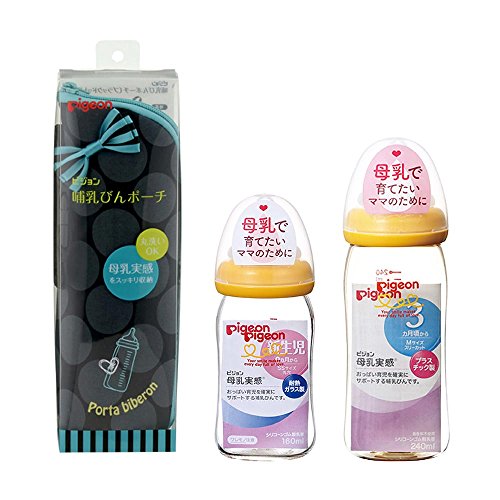 このセット買い商品には「ピジョン 哺乳びん 母乳実感 耐熱ガラス製 オレンジイエロー 160ml」と「プラスチック製 オレンジイエロー 240ml」と「哺乳びんポーチ(ブラックドット柄)」が含まれます