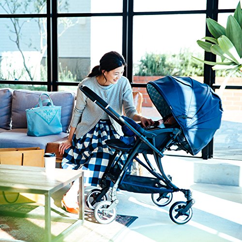 - 段差をラクラク乗り越えられる16.5㎝のシングルタイヤの両対面式A形ベビーカー