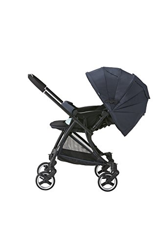 - 段差をラクラク乗り越えられる16.5㎝のシングルタイヤの両対面式A形ベビーカー
