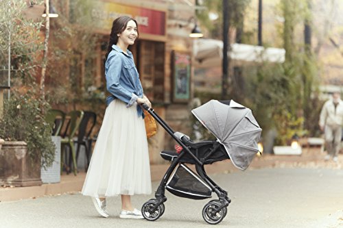 赤ちゃんと顔を見合わせられる対面時のお出かけを楽しめる機能が進化し、たとえば前後で大きさの違う大径シングルタイヤ、押しやすくなったフレームなど、街中の段差(※1)もストレスなく、スイスイ。