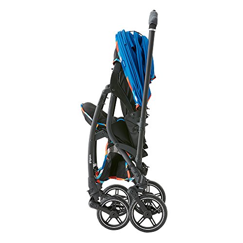 片手で赤ちゃんをだっこしながら、ワンタッチで折りたたむことができます。タイヤが足にあたりにくく、持ち運びしやすい設計です。