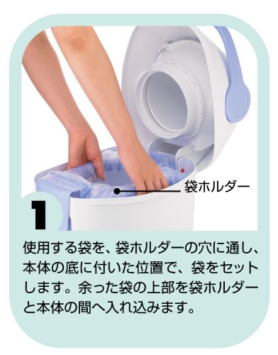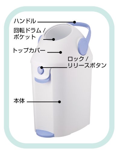 ●【商品説明】●「ピジョン カセット不要のらくらくおむつポットン」は、ご家庭にあるゴミ袋(推奨サイズ30L相当)を利用する、専用カセット不要のおむつ用ゴミ箱です。●回転ドラムとパッキンにより、ゴミ袋内部に臭いを閉じ込めます。●ゴミ袋のくちを閉めるだけで手早く、パパッとゴミ回収に出すことができ、操作もお手入れも簡単です。●回転ドラムは取り外して水拭き等も可能です。●【使用方法】●・トップカバー(白色)を開けて使用する袋を袋ホルダーの穴に通し、本体の底に着いた位置で袋をセットします。●・余った袋の上部を袋ホルダーと本体の間へ入れ込みます。●・トップカバーを閉じて袋のセット完了です。●・回転ドラムのポケットに使用済みおむつをいれます(おむつについた便を、必ず事前にトイレに流してください)。●・ハンドル(紫色)を手前方向に回転させ、回転ドラムのポケットを閉じてください。●おむつが袋の中へ落ちていきます。●・ハンドルを後方へ倒し、回転ドラムの位置を戻してください。●おむつのにおいが漏れにくくなります。●・袋の交換は袋ホルダーの取っ手に指をかけ、紫色のボタンを押しながら...