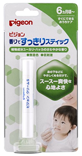 「ピジョン香りですっきりスティック」は、ぬりやすいスティックタイプの鼻用メントールスティックです。すっとのびてベタつかず、かさついた肌にもやさしい使い心地です。鼻の下などにぬることで簡単に肌荒れを防ぎ、鼻水やティッシュの摩擦から皮ふを保護します。ご家族皆様でお使いいただけます。ユーカリ・ハッカ油配合。無着色・低刺激・皮ふアレルギーテスト済(すべての方にアレルギーが起きないというわけではありません。)