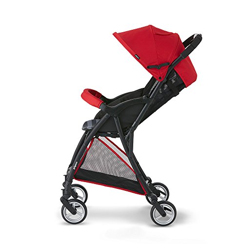 - 押しやすい「シングルタイヤ」を搭載した軽量B形ベビーカー。片手でコンパクトに折りたためます。