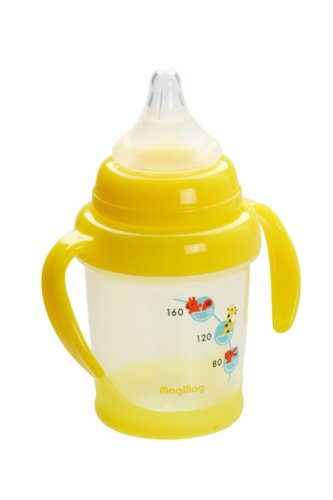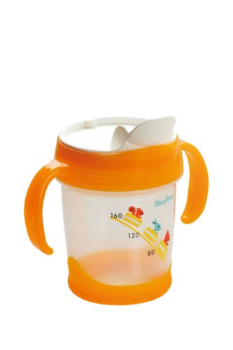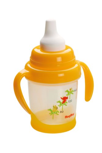 コップ飲みのトレーニングに。口の脇からのこぼれを防ぎ、赤ちゃんが自分ですすりこみしやすい飲み口つき。