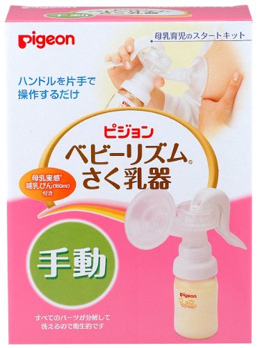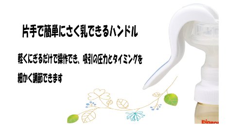 「ピジョン ベビーリズムさく乳器 手動タイプ」は、片手で手軽に赤ちゃんのほ乳リズムでさく乳できる手動搾乳器です。乳首にぴったりフィットするさく乳カバーと、軽くにぎるだkで操作できるハンドルで、乳房への負担をかけません。分解しやすいので、洗浄しやすく、すべての部品が消毒できるので、衛生的にお使いいただけます。ハンドルのにぎりの強さで、さく乳の吸引圧を調節が可能。乳房や乳首のトラブルで、直接搾乳することが困難なときや、母乳を保存しておきたいとき、赤ちゃんが直接母乳を飲めないときなど、母乳で育てたいママを応援します。付属の乳首、キャップをつけて、赤ちゃんに与えられます。 販売元:ピジョン