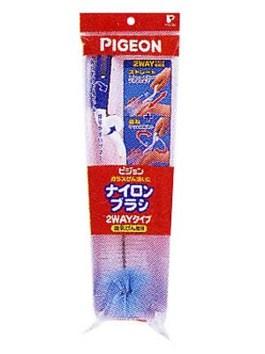 「ナイロンブラシ 2WAYタイプ ガラスびん専用」は、ガラス製哺乳びん用の洗浄ブラシです。ラクラク回転洗いと、しっかりストレート洗いの2WAY使用が可能です。握り手部分は回転式で、握り上部のつかみシロに親指を掛けるだけでスムーズに回転洗いができます。ナイロンの先端は球状突起の内部を洗浄しやすいようにブラシの構造を工夫し、細かい先端部分の洗浄性能を高めるためにナイロン面積も多くとりました。 販売元:ピジョン内容量:1本