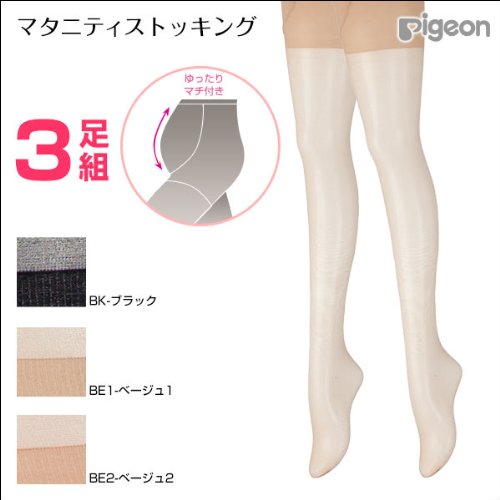 (ピジョン)pigeon マタニティ ストッキング 3足組 パンスト(妊娠初期-出産)(BK-ブラック、L-LL)