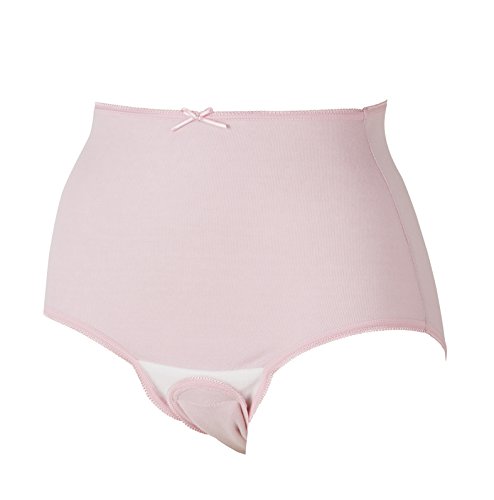 ピジョン 産じょくショーツ2枚組 マルチボーダー&無地(クロッチオープン) L~LL ピンク