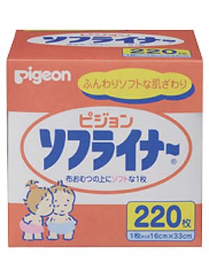 「ソフライナー 220枚入」は、布おむつ使用時に使えるおむつライナーです。ふんわり、やわらかな肌ざわりです。 内容量:220枚入販売元 : ピジョン