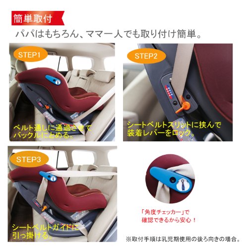 ・角度チェック機能付きだから、取り付けが簡単でしっかり固定ができ、赤ちゃんとの車のお出かけがもっと楽しく、安心になります。
