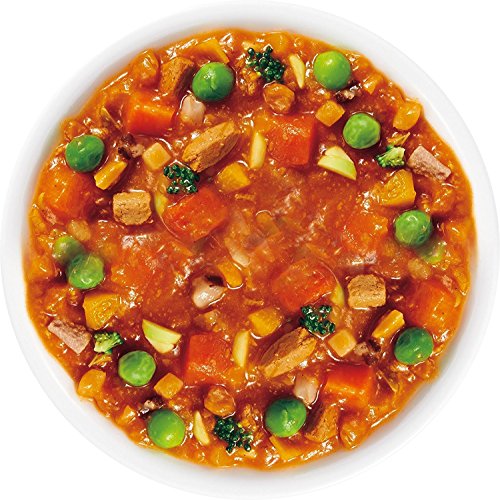 - 原材料:野菜(たまねぎ、にんじん、じゃがいも、グリーンピース、かぼちゃ、ブロッコリー、えだまめ、キャベツ、ごぼう、白菜、しいたけ、ピーマン)、トマトピューレ、肉加工品(鶏レバー、豚肉、つなぎ(小麦粉、大豆たん白)、食塩)、全粉乳、バター、チキンエキス、カレーパウダー、増粘剤(加工でん粉)