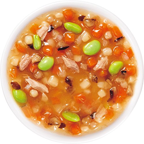 - 原材料:野菜(えだまめ、たまねぎ、にんじん、しいたけ、じゃがいも)、まぐろ水煮、しょうゆ、砂糖、チキンエキス、ごま油、食塩、増粘剤(加工でん粉)、(原材料の一部に小麦を含む)