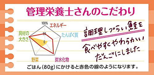 - 原材料:野菜(にんじん、じゃがいも、とうもろこし)、魚団子(鮭、たら、つなぎ(でん粉、小麦粉、乾燥卵白)、たまねぎ、植物油脂、砂糖、食塩)、油揚げ、しょうゆ、昆布エキス、チキンエキス、砂糖、酵母エキス、しょうがエキス、増粘剤(加工でん粉)