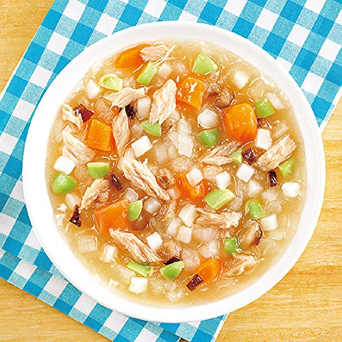 原材料:野菜(たまねぎ、にんじん、じゃがいも、えだまめ(大豆を含む))、まぐろ水煮(国内製造)、しいたけ水煮、しょうゆ(小麦を含む)、砂糖、チキンエキス、ごま油、食塩/増粘剤(加工でん粉)