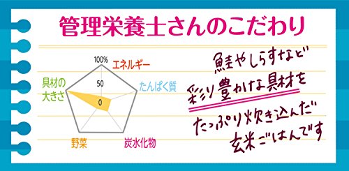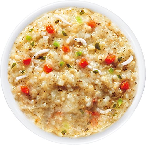- 原材料:玄米(国産)、野菜(キャベツ、にんじん)、精白米(国産)、わかめ、鮭、しらす、チキンエキス、オイスターエキス、ごま油、食塩、増粘剤(加工でん粉)、(原材料の一部に小麦を含む)