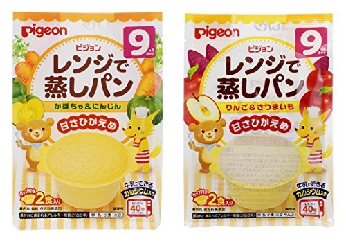 本商品は、[ピジョン レンジで 蒸しパン りんご&さつまいも]と[ピジョン レンジで蒸しパン かぼちゃ&にんじん]のセット販売となります。