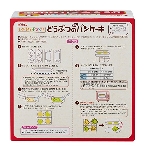 ●【商品説明】●「ピジョン どうぶつのミニパンケーキ プレーン&ほうれん草 21g×2個 9ヵ月頃から」は、手づくりしづらいかわいいパンケーキがかんたんに作れるベビーフード その他料理(9ヶ月頃から)です。●1回で4種類のどうぶつ型のミニパンケーキがつくれます。●ボウルが不要なので、面倒な準備や後片付けの必要なし。●手軽なので、いつものおやつにぴったりです。●鉄・カルシウム配合。●甘さ控えめ。●着色料・保存料・香料不使用。●【原材料に含まれるアレルギー物質】●小麦、卵、乳、大豆●【お召し上がり方】●【作り方】(1)型を3つに切り離します。●(2)型の丸いボウル部分に牛乳または水を下の線まで入れます。●※育児用ミルクで作る場合は、人肌程度に十分に冷ましてからお使いください。●※ミルクの種類により、加熱時間が異なったり、型から外しにくくなる事がありますので牛乳または水の使用をおすすめします。●※お湯や温めた牛乳は使用しないでください。●(3)粉を入れてダマがなくなるまでよく混ぜます(1分程度)。●もう1つの粉も、もう1つの型に入れて同じように混ぜます。●...