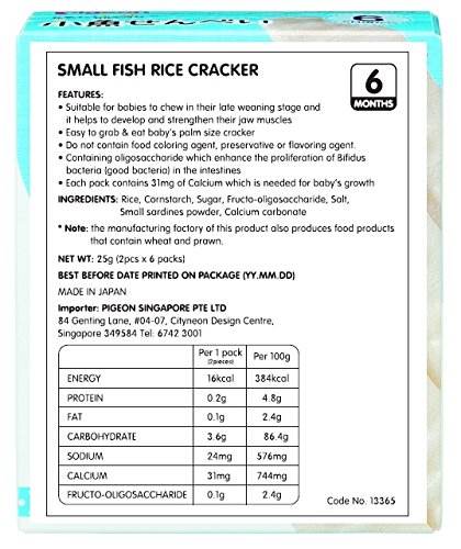 - 原材料:米(うるち米)、コーンスターチ、砂糖、フラクトオリゴ糖、食塩、煮干し粉末、炭酸カルシウム