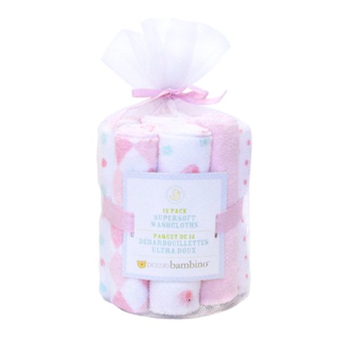 Piccolo Bambino Set of 12 Essential Washcloths, Pink