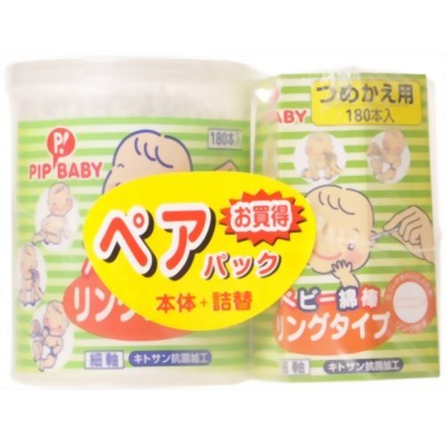 「ピップ ベビー綿棒 ペアパック(本体+詰替)」は、綿球が丸く、軸が細い赤ちゃんにやさしいベビー綿棒です。キトサン抗菌加工。