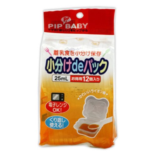「ピップベビー小分けdeパック25ml12個入」は、まとめてつくった離乳食を小分けして冷凍保存できるパックです。かわいいライオンの顔だから赤ちゃんも喜んで食べてくれます。電子レンジで解凍・加熱に使用できます。容器は食べ物が残りにくいスムース構造。積み重ねができ、すっきり収納できます。材質はポリプロピレンで安全です。