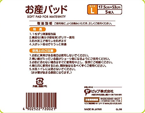 全国の病院や医院でも使用している、出産前後の必需品の『PIPBABY お産パッド』。すぐれた吸収力の高吸収ポリマーを使用し、スポット吸収でサラッと快適。防水加工で横モレ防止。1枚ずつの清潔個包装。18cm×48.5cm。