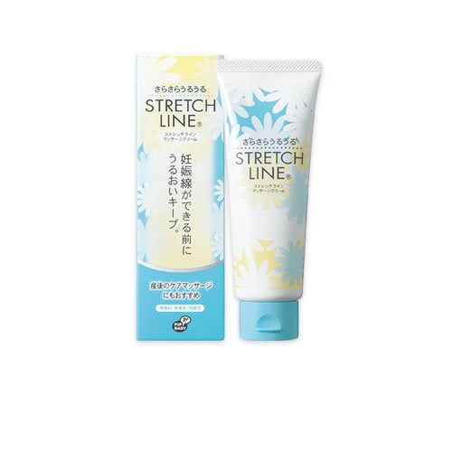 妊娠中・産後のボディケアに効果的なマッサージクリーム。うるおい成分配分。(ホホバ油、ヒアルロン酸、コラーゲン、スクワラン)無香料、無着色、弱酸性。皮フ科専門医による、皮フ刺激テスト済。
