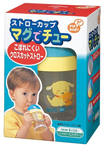 ピップベビー ストローカップ 本体 マグでチュー こぼれにくいクロスカットストロー ミントグリーン 専用ストローブラシ付 8ヶ月頃から対象