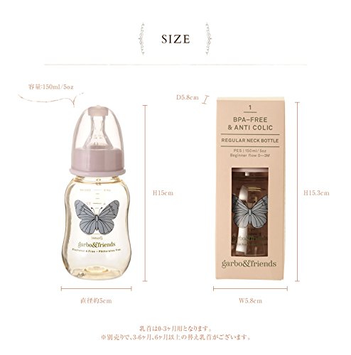 ガルボアンドフレンズ 哺乳瓶 150ml 0-3ヶ月用乳首付(レギュラーサイズ) バタフライ