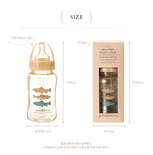 ガルボアンドフレンズ 哺乳瓶 300ml 0-3ヶ月用乳首付(ワイドサイズ) フィッシュ