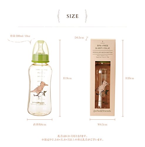 ガルボアンドフレンズ 哺乳瓶 300ml 0-3ヶ月用乳首付(レギュラーサイズ) バード