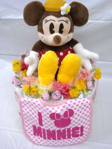 ご出産お祝い<おむつケーキ> リーズナブルなお値段のかわいいおむつケーキ ディズニーE (女の子用ミニー)