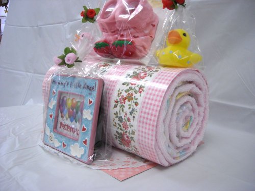 ご出産お祝い<おむつケーキ> 人気のロールケーキ風のかわいいおむつケーキ おむつロールケーキ (女の子用)
