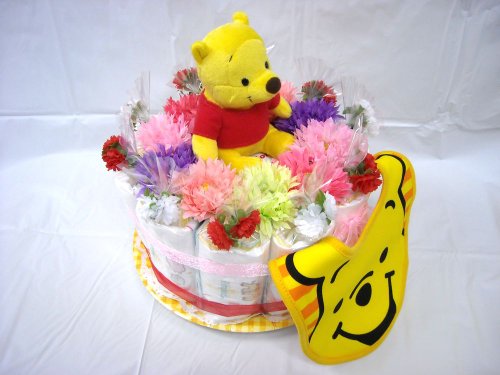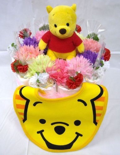 ご出産お祝い<おむつケーキ> リーズナブルなお値段のかわいいおむつケーキ ディズニーD (くまのプーさん)