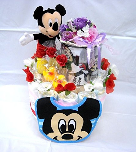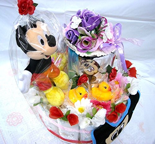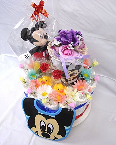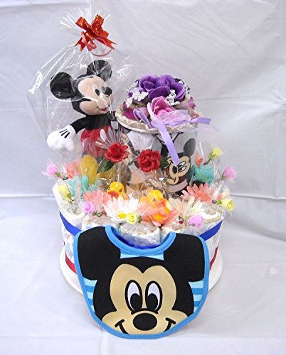 ご出産お祝い<おむつケーキ> 可愛いくって豪華な人気の「2段おむつケーキ」 ディズニーH (男の子用ミッキー)