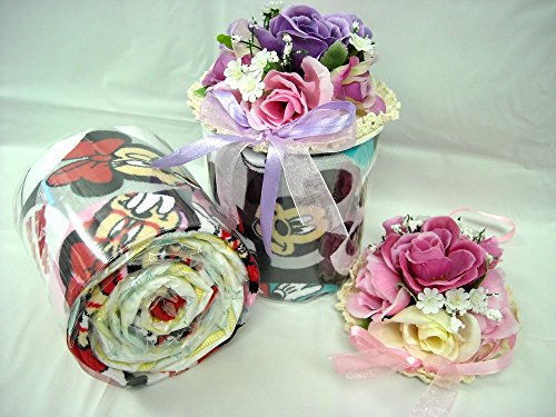 - おむつケーキサイズ : 直径約26cm 高さ約38cm かわいいベビービブ付き(制作時期により、ビブやタオル、おもちゃ等の付属品のデザインや柄が変更になる場合がございます。ご了承下さいませ。)
