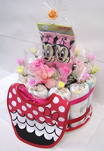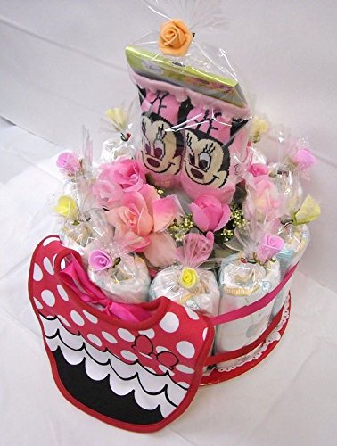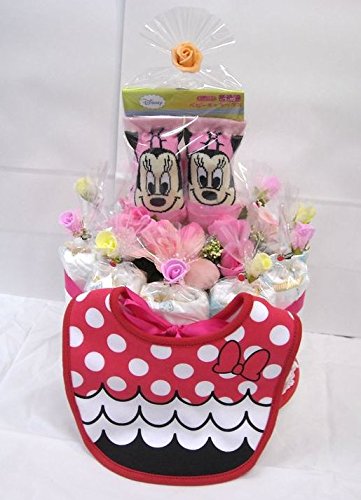 ご出産お祝い<おむつケーキ> リーズナブルなお値段のかわいいおむつケーキ ディズニーK (女の子用ミニー)