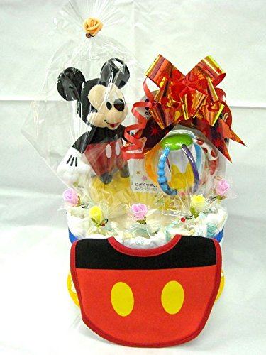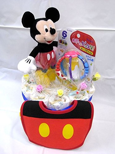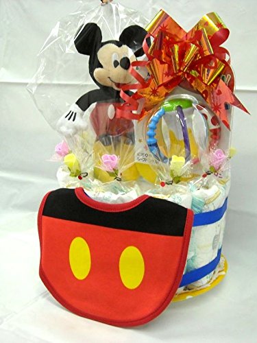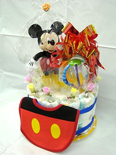 ご出産お祝い<おむつケーキ> リーズナブルなお値段のかわいいおむつケーキ ディズニーP (男の子用ミッキー)