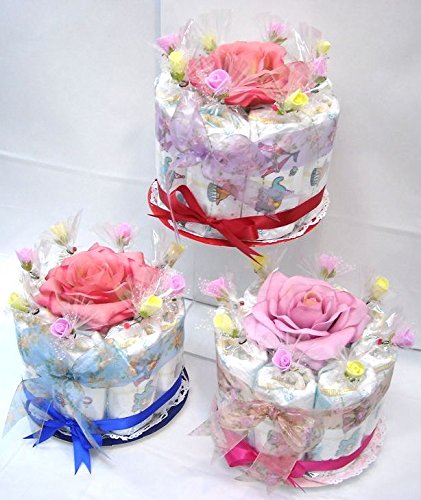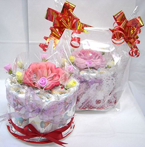 - おむつケーキサイズ : 直径約18cm 高さ約18cm(作成時期によりお花のデザイン等が変更になる場合がございます。ご了承くださいませ)