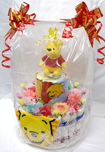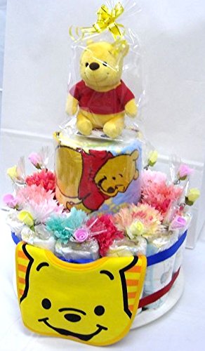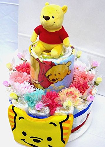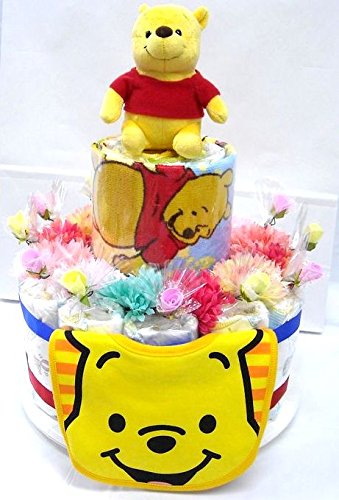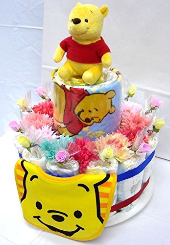 ご出産お祝い<おむつケーキ> 可愛いくってボリューム感たっぷりな人気の「2段おむつケーキ」 ディズニーM (男女共用くまのプーさん)おむつ30枚使用の豪華版