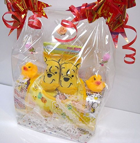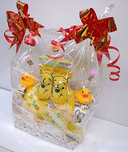 - おむつケーキは飾ってお楽しみいただける様に全体を透明セロファンでカバーし、リボンラッピングしてございます (リボンラッピング後の高さ、約45cm)おむつケーキお渡し時にご利用頂ける、白地のペーパーバッグを同梱いたしております。
