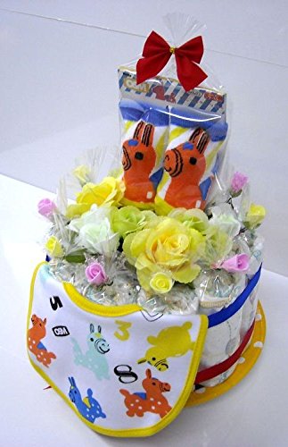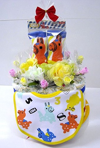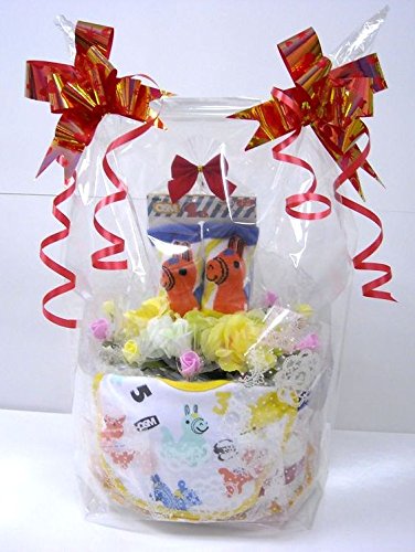 - おむつケーキサイズ : 直径約21cm 高さ約26cm かわいいベビービブ付き(制作時期により、ビブやベビーソックス等の付属品のデザインや柄が変更になる場合がございます。ご了承下さいませ。)