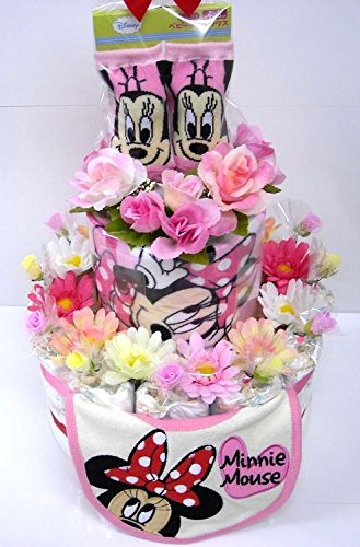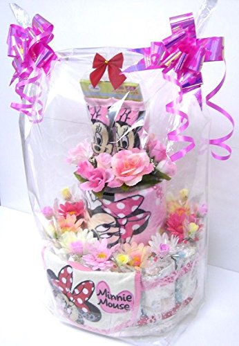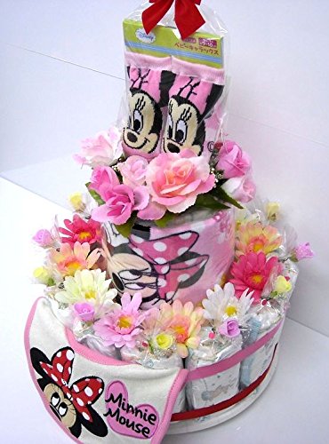 ご出産お祝い <おむつケーキ> 可愛いくって 人気の 「2段おむつケーキ ディズニーR 女の子用ミニー」 おむつ30枚使用の 豪華版
