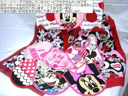 - ベビーソックスサイズ:0~1歳(約7~10cm) ミニー柄のベビーソックス、ベビービブ、フェイスタオルが使われています