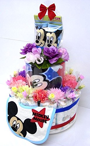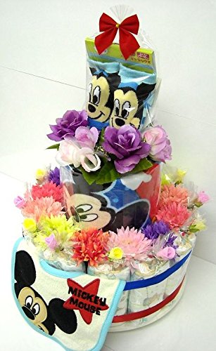 ご出産お祝い<おむつケーキ> 可愛いくって人気の「2段おむつケーキ ディズニーR 男の子用ミッキー」おむつ30枚使用の豪華版