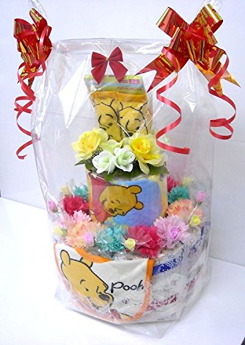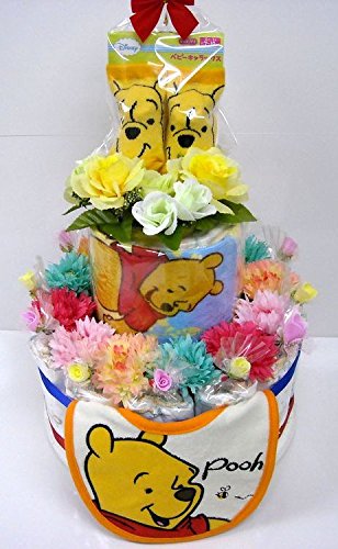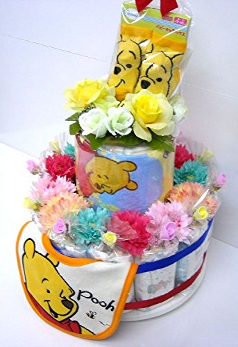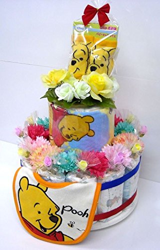 ご出産お祝い<おむつケーキ> 可愛いくって人気の「2段おむつケーキ ディズニーR くまのプーさん」おむつ30枚使用の豪華版
